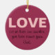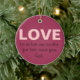 Let us love one another, for love comes from God ornament in wine colour. Pretty decor for your Christmas tree. A great message on a special ornament that can be used year round too - just hang it in a special place as a reminder to LOVE. A great gift!