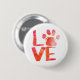 Celebrate Valentine's Day AND (most importantly) show your support of animal welfare with this colourful LOVE paw print button. This button features the word "LOVE" written in a red-orange brushstroke motif, as well as a sweet paw print serving as the letter "O."