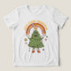 Celebrate the season with this whimsical and heartwarming design! Featuring a cheerful Christmas tree character, complete with festive lights and cosy boots, standing under a vibrant rainbow with the message "Love, Peace, Christmas." This fun and colourful image exudes retro vibes and is perfect for spreading positive energy and holiday cheer with a dash of nostalgia.