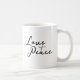 This white mug features a minimalist and heartfelt design with the words **"Love"** and **"Peace"** in elegant black script, beautifully accented by a subtle cross symbol. Simple yet meaningful, it's perfect for your morning coffee or tea and makes a thoughtful gift for anyone who appreciates faith and positivity in their daily routine.