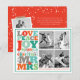 Love Peace Joy Kisses Our First Christmas As Mr & Mrs, Colourful And Bold Typography, Newlywed Couple's 1st Christmas, 4 PhotoCollage Holiday Wedding Announcement Card.