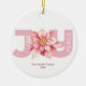 Love Peace Joy Pink Poinsettia Christmas Photo Ceramic Tree Decoration