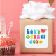 Fly stright to the 1970s with this retro colourful love, peace and joy square sticker! Enjoy!