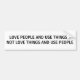 LOVE PEOPLE AND USE THINGS BUMPER STICKER