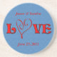 Love in decorative letters wedding gift sandstone coaster. Replace your information in the template. Contact me through Send Message on my homepage with any questions or requests. Please visit Smilin' Eyes Treasures to see more animal, flower, and nature cards and gifts for home and office.