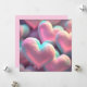 Soft, pastel-coloured hearts are clustered together, glowing with hues of pink and blue. Each heart appears fluffy and cloud-like, creating a dreamy and ethereal atmosphere.