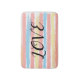 Love is written in black script. Pretty pastel pink, blue, and yellow summer stripes on white background. Original Artwork Designs © TamiraZDesigns