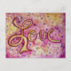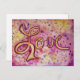 The word "Love" curls in golden watercolor swirls against a glamourous pink background. The love artwork comes with and without glitter. The inspirational word painting series are taken from the text used in the angel paintings. "I choose to know love" -My Life, My Choice "In my life I choose to know my love" -Feel Beauty "It cannot cripple love" -What Cancer Cannot Do These images are designed so as to provide reflection and meditation on a single word. The idea is to think about the painting and it will help you have a positive attitude associated with that word which will be emotionally healing to a person. You can also combine them together to make your own word series for meditation/ contemplation. Personalise this love word art postcard with your own text and images using the "Customise It" button.