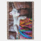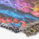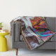 A quality printed throw has its advantages. This is a much finer weave throw than its loopier cousins, and though lighter, it is worth the investment for custom room accessorizing. The back is much prettier than the typical brown, and the fringe on the long sides very vivid, the selvage nicely done. Before photographing, I washed the throw in cold water, delicate, with a thicker woven throw the same size. On tumble dry low, this throw was dry in half the time as the other. This is a very practical quality if you use throws for furniture covers or to wrap up in frequently. The sleekness of the fabric makes it a great layer for accenting or protecting without the feeling of sitting on too much stuff. Perfect for napping or when you feel a light chill coming on. The color printing is beautiful and on this fabric, matched the design and color of my Photoshop image. This is an advantage for blending room fabrics and colors. The fringe on the short sides prints the colors from the design image and therefore varies from the side fringe. I streaked a white fractal line through the plaid pattern to give the illusion of weaving. This printed as crisp as an illusory thread, and put some white in the short side fringe, showing another advantage of print vs loomed- for artistic purposes, line lines, detail, and color integrity can be planned and preserved. My loomed throws have color limitations and more of a needlepoint texture. Print throws reproduce an exact image. The throw felt a little stiff straight out of the package, but this went away in the first delicate wash. Of course I searched the wash water for ink or bleeding and there was none.