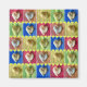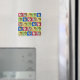 Rows of heart shaped potato chips on various colourful squares in rainbow colours, is printed on magnets. Each heart is on an individual square. The colourful squares form rows which are divided by a row of small yellow hearts. The background at the top and the bottom of the hearts is yellow too, and it can be customised to any colour of your selection. Thank you for shopping at CherylsArt on Zazzle.