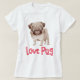 Aww...who can resist the sweet face of a Pug pup? This fun canine t-shirt features a cute graphic of a tan and white Pug puppy dog. Every time you wear your shirt this cute pug will be sending you lots of love