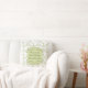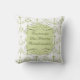 Shabby chic style throw pillow with love quote in French that reads, All Because Two People Fell in Love. Chandelier background with vintage heart scrolls and green accents.