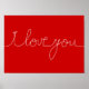 Romantic themed design - Red background color with the words 'I love you' in a manuscript white font style