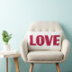 Throw pillow with the word LOVE filled with a deep red and gold hearts. Has a coordinating print on the back. Add your own message to the back or leave blank. View all of our decor in our Zazzle store!