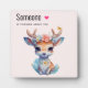 A photo plaque with an adorable illustration. A sweet baby deer with big eyes, antlers and a little butterfly friend. Darling design. Text says: Someone is thinking about you. With a little heart decoration. Cute and whimsical.