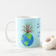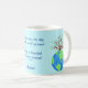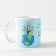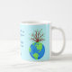 Enjoy drinking your coffee or favourite beverage in this mug personalised with your name at the bottom of the mug with earth art! This mug is a great way to show your love of the beautiful earth and to promote Earth Day with colourful art and a poem of words about loving, saving and protecting planet earth. The art is original art and words by Phyllis Dobbs and has a blue and green earth globe. A growing tree with green leaves is behind the earth. The words say "Love the seas, the sky and the earth's ground to keep it beautiful and forever around". The earth art images are on both sides of the mug with the words centred between them. The art and words are on a light turquoise blue background. These words and art show the beauty of earth, to love and save, and is available on other products in this store and other background colours. (The word saying is copyrighted and cannot be used on other products than the products in this store without permission).
