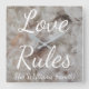 Love Rules Bird Feathers Photography Elegant Square Wall Clock