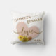 This rustic, country-style throw pillow is perfect for newlyweds or couples celebrating many years of marriage. A soft peach heart holds the word "love" while cute flower blooms border the bottom of the heart. The pillow is customisable with the couple's name and the date their love began, whether it be a wedding date or an engagement date. Design and illustration ©Vann-Horn Creative Photo & Designs.