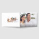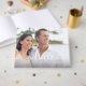 Celebrate your wedding anniversary milestone with our beautiful & elegant personalised photo collage wedding anniversary guest book. The design features a large full photo placeholder on the font cover with "Love"in a stylish white script typography and personalised years married, name and wedding date. The reverse side features a clean, minimal two photo layout and the script "Love" typography placed over the photos.
