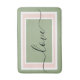 Love is written in black script. Sage green background with pastel blush pink and white geometric block pattern. Original Designs by TamiraZDesigns.