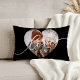 A minimal and simple design featuring the word "love" written across the center of the pillow in a delicate, flowing script. The script has elegant swashes that extend horizontally to the edges conveying a sense of uplifting joy. Your favorite photo on front and back with your initials below in an elegant serif font. This modern, romantic pillow is perfect for bedroom decor or a Valentine's Day accent.