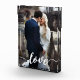 Create a sweet keepsake of your wedding, honeymoon or special moment with this modern freestanding acrylic photo block. Add your favourite vertical / portrait orientated photo with "love" overlaid in white handwritten style modern calligraphy lettering.
