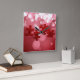 4 red puzzle pieces with the lettering "LOVE" on a bokeh background.
