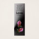 Double pink rose buds on gradient black and grey vertical background with pink border. Love scripture I Corinthians 13:13 is on front. Use as a profile card or bookmark.
