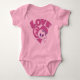 Cute skull and crossbones set on a pink heart with message "LOVE".