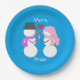 Love & Snowpeople Blue-green: Merry Xmas Party Paper Plate