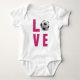 Love Soccer word design with hot pink faux sparkle letters and the "o" is replaced by a soccer ball.