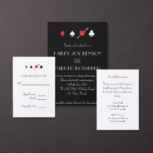Envelope motif coordinates with the Love Struck wedding invitation and is perfect for a Vegas wedding or a red and black casino themed party!