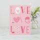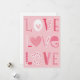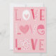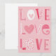 Elegant and cute handlettered Love Love Love text in pink shades with hearts, flowers and little dots.