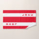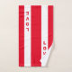 Elegant vertical text on red and white striped Towel Set. Text can be personalised.