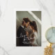 A stylish and elegant wedding thank you card design with the words "Love & Thanks" in a beautiful white script font. It includes space for a custom photo, names, and the wedding date in a classic white font. A perfect way to add a personal touch to your special day!