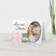 Thank your wedding guests with this beautiful and romantic folded card. It features a lovely design with your wedding photo in an oval shaped frame, and a single long stemmed pale blush pink coloured rose reflecting in a pool of water. The caption reads "Love and Thanks" and there are cute hearts scattered about. Inside is space for your custom note and signature, with plenty of room to write your own individualised message to each guest.