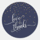 Love & Thanks Script, Gold Confetti and Navy Blue Classic Round Sticker