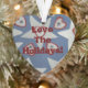 Love The Holidays! is a design that takes us to a place where holidays are always welcomed & loved! Embellished with red & white hearts & a white star, this ornament makes a festive gift! The back is done in a solid blue!