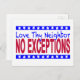 "Love Thy Neighbour NO EXCEPTIONS" Postcard