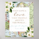 Charming blue and green map with white boho flowers and a romantic travel theme quote wedding or bridal shower sign. When the couple has travelled the world together for work or for fun, a travel themed "around the world" bridal shower or engagement party is in order.