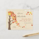 A wonderfully romantic and sweet wedding save the date postcard with a tree whose leaves are in the shape of hearts in yellow, red and orange and a few of those leaves being swept away by a mild breeze. Lovely for an autumn wedding!