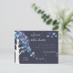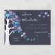 A wonderfully romantic and sweet wedding invitation with a tree which leaves are in the shape of hearts in blue, purple and violet and a few of those leaves being swept away by a mild breeze against a dark matte blue background. Lovely for a winter wedding!