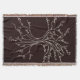 A quality printed throw has its advantages. This is a much finer weave throw than its loopier cousins, and though lighter, it is worth the investment for custom room accessorizing. The back is much prettier than the typical brown, and the fringe on the long sides very vivid, the selvage nicely done. Before photographing, I washed the throw in cold water, delicate, with a thicker woven throw the same size. On tumble dry low, this throw was dry in half the time as the other. This is a very practical quality if you use throws for furniture covers or to wrap up in frequently. The sleekness of the fabric makes it a great layer for accenting or protecting without the feeling of sitting on too much stuff. Perfect for napping or when you feel a light chill coming on. The color printing is beautiful and on this fabric, matched the design and color of my Photoshop image. This is an advantage for blending room fabrics and colors. The fringe on the short sides prints the colors from the design image and therefore varies from the side fringe. I streaked a white fractal line through the plaid pattern to give the illusion of weaving. This printed as crisp as an illusory thread, and put some white in the short side fringe, showing another advantage of print vs loomed- for artistic purposes, line lines, detail, and color integrity can be planned and preserved. My loomed throws have color limitations and more of a needlepoint texture. Print throws reproduce an exact image. The throw felt a little stiff straight out of the package, but this went away in the first delicate wash. Of course I searched the wash water for ink or bleeding and there was none.
