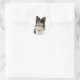 This cute canine sticker features an image of a happy tri-colour Border Collie puppy dog highlighted against a creamy white background