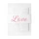 Add a touch of tropical elegance to your wedding suite with this minimalist belly band. Featuring soft pink and white tones and the word love in graceful script, it’s perfect for summer weddings, beach tropical girly themes, and couples who favor clean design with emotional impact. Wrap your invitation stack in style—cute, romantic, and unforgettable.