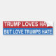 An anti-Trump political design that says ‘Trump loves hate but love trumps hate’. For Democrats who knew better than to vote for Donald Trump.