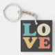 Love Typography Retro Colour Square Key Ring