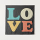 LOVE typography in a retro colour square design. Black added to background, but can be altered to your own choice of colour.