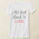 White Cotton V Neck T. "All you need is love" in red and white on front. "Love is all you need" in black on the back. (This Tshirt looks best loose so I would recommend getting one or two sizes up)