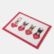 Illustration of three French Bulldog puppies of different colours popping out of hearts dressed in Valentine's Day attire.